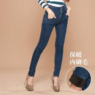 【雪莉亞】日系高腰緊身刷毛褲(顯瘦藍實腰實碼26-31)