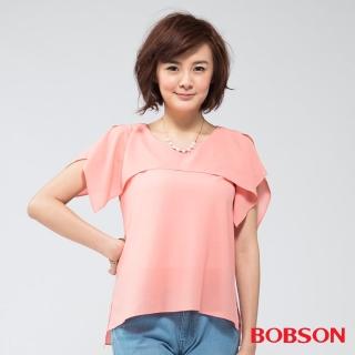 【BOBSON】女款雪紡紗短袖上衣(粉桔24096-23)